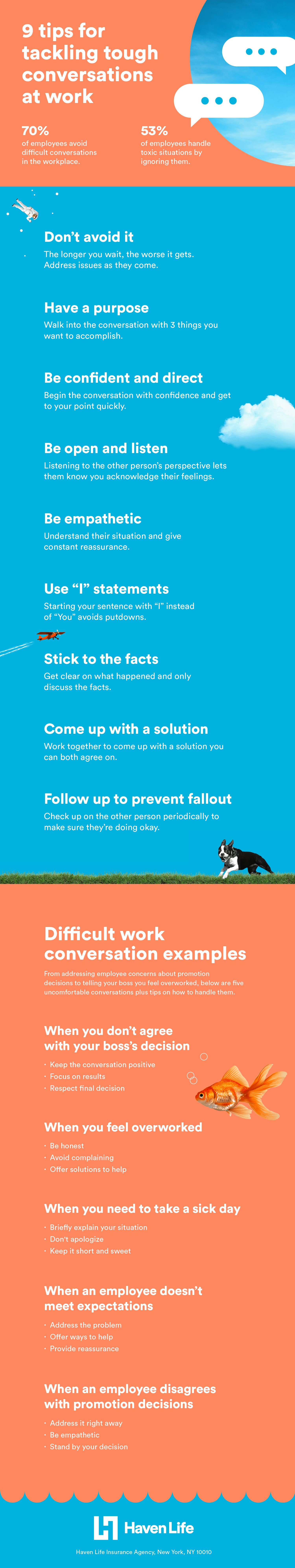 When it comes to difficult conversations at work, communication and confidence are key. For more tips on how to handle difficult conversations at work, check out the infographic below: